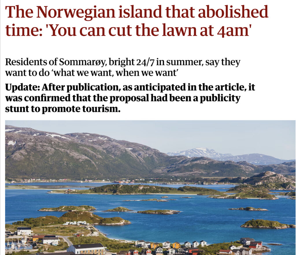 He said residents of Sommarøy would not find life without time particularly easy. “I’m not going to say it’s impossible to pull a whole island out of the global clock,” he told the broadcaster. “But it does sound very difficult.”