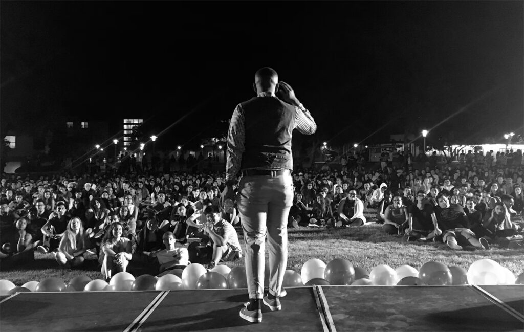 As his website points out, he “is an amalgamation of social critique, introspection, honesty and humor. He uses personal narratives to discuss the politics of race, class, gender and religion while simultaneously pinpointing and reinforcing the interconnected nature of human existence.”